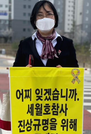 올해도 3월 한달 매주 목요일 점심시간에 1시간씩 분향소가 있는 풍남문 사거리에서 마음을 내는 지인들과 1인 시위를 했다! 수많은 시민들이 지나가던 예전의 거리에 비해 많이 한산해졌지만 그래도 전주 한옥마을의 경기전 사거리는 많이 붐빈다. 1인 시위 하고 있는 어느날, 어떤 시민이 다가와서 조용히 말씀해주신다. ‘수고 많으시다. 안산에서 전주 한옥마을에 여행 왔는데, 유가족들 생각하면 마음이 찢어진다고. 하지만 시민 한 사람으로서 할수있는 일이 없다.’.