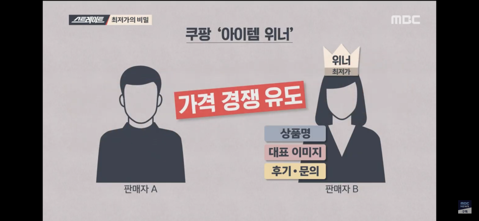 오랫동안 문제로 제기되었던 쿠팡의 아이템위너 시스템은 MBC 탐사기획팀에서 집중 보도하면서 다시 환기되고 있다. MBC에서 보도한 쿠팡의 문제점들은 이 외에도 다양하다. 쿠팡의 정산제도, PB상품 대놓고 밀어주기, 쿠팡이츠의 라이더 수수료 문제 등등.