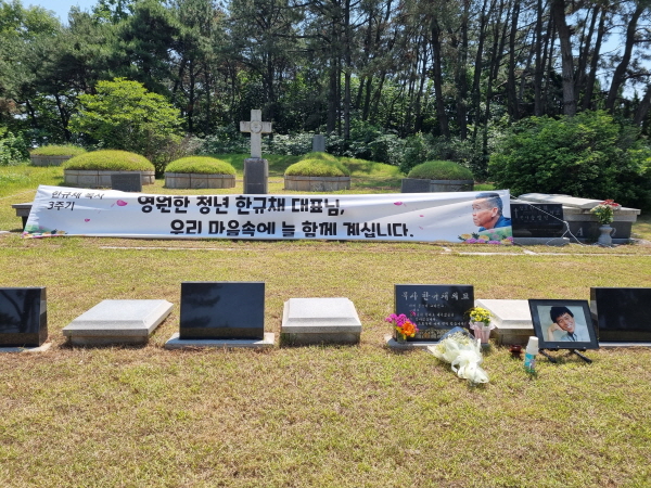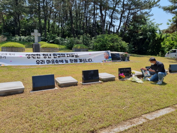 한규채 대표님께서 돌아가신 지 벌써 3년이 되었습니다. 코로나 상황을 감안하여 조촐한 인원이 모여 대표님께 인사를 드리고 좋아하시던 소주도 올렸네요. 그리운 대표님~~! 보고 싶습니다.