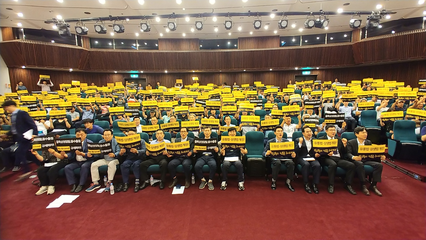 노브랜드 입점에 따른 지역상인의 피해 사례와 노브랜드 실태조사를 하고자 청주 노브랜드 매장을 찾았다. 그리고 한 달 뒤 ‘중소상인살리기전북도민운동본부’2 출범을 시작으로 편법출점하고 있는 이마트 노브랜드 문제를 공론화하며 골목상권 진입 저지를 위한 본격적인 활동에 돌입했다. 청주, 부산 등 노브랜드 입점과 관련하여 전국 13개 지역에서 개별적으로 대응하던 중소상인들을 조직화하고, 전국대책위원회까지 이어가면서 국회 압박 수위를 높여갔다. 주요 목적은 노브랜드 가맹점의 편법출점으로 이어지게 한 ‘가맹점주의 개점비용 부담 비율 폐지’, ‘노브랜드 가맹점 출점 중지’를 우선 과제로 삼고, 더불어 복합쇼핑몰과 기업형슈퍼마켓 등 유통대기업의 입점 규제 강화를 위한 유통산업발전법 개정을 과제로 제시했다.