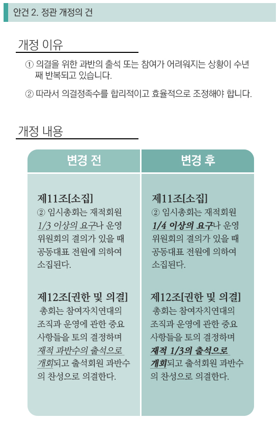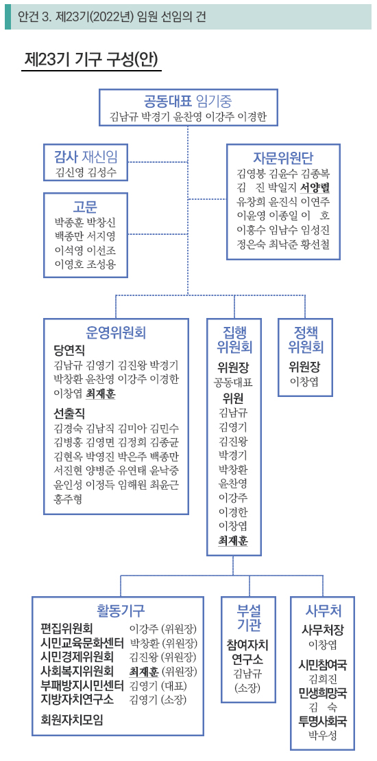 ※ 각 안건의 자세한 내용은 제23기 정기총회 자료집을 참고하세요.