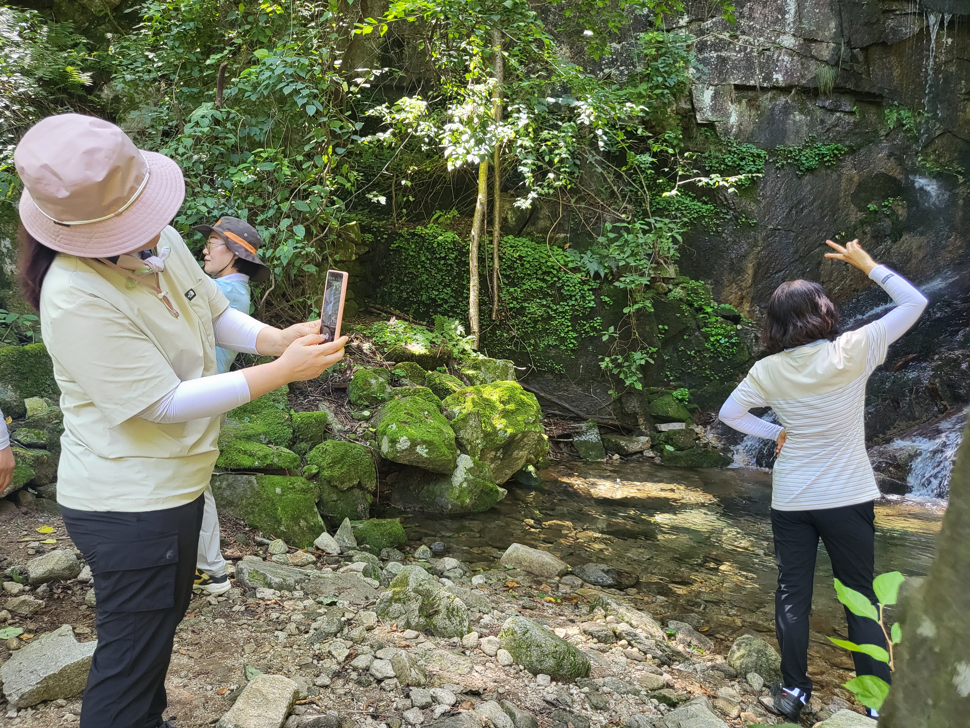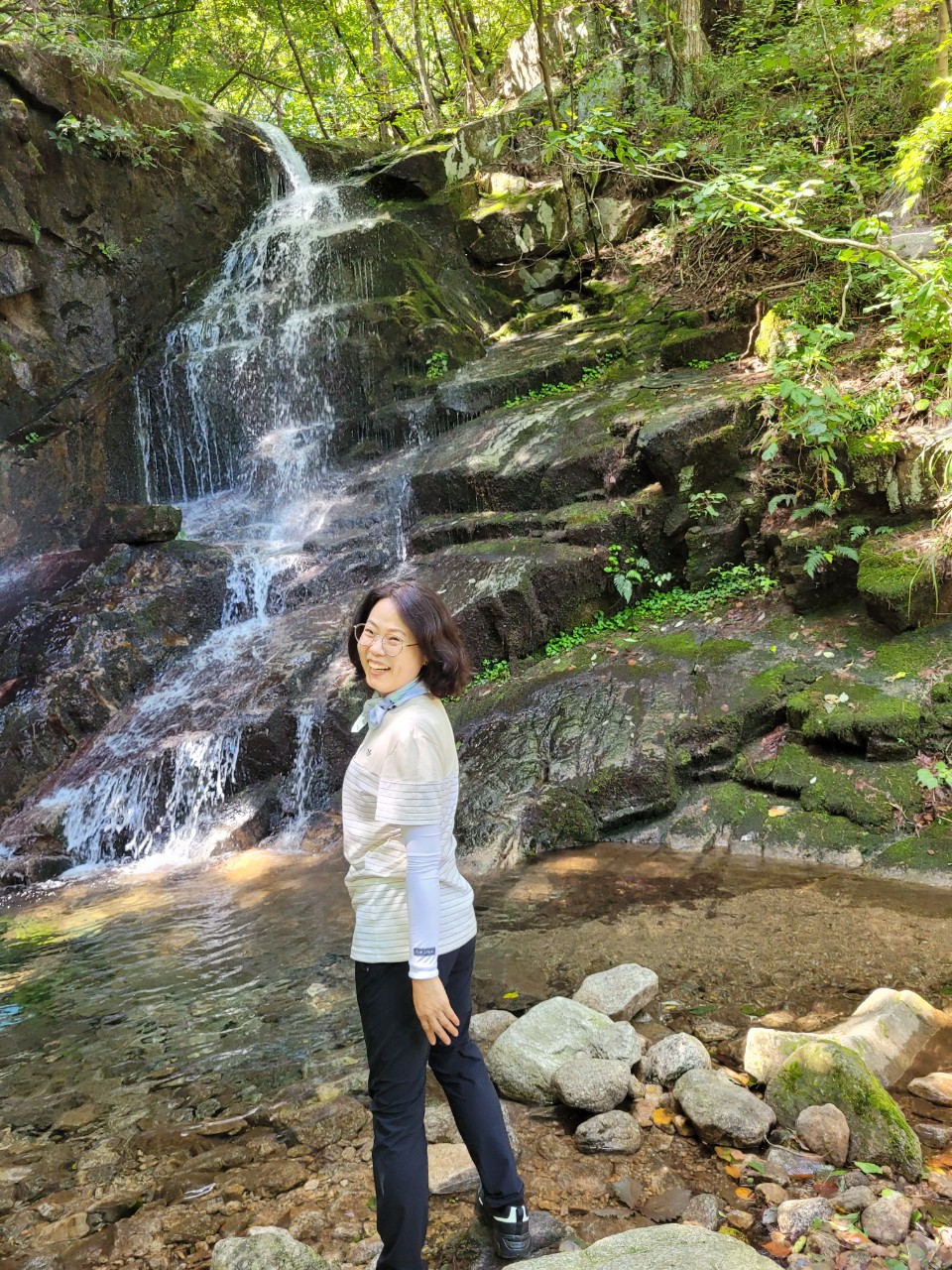한 시간 남짓 숲길을 걷다 보니 시원한 폭포계곡을 마주하게 됩니다. 이내 마음이 투명해집니다.