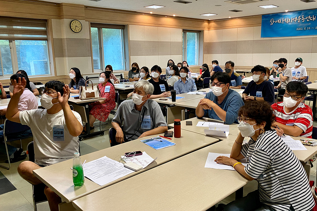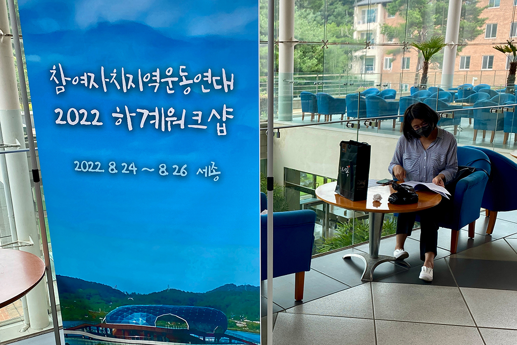 저희 단체가 참여하고 있는 참여자치지역운동연대 하계워크샵이 지난 8월 24일부터 26일까지 세종시에서 개최되었습니다. 이번 워크샵에서는 지역운동연대가 올 하반기에 함께 추진할 "이해충돌방지법 관련 지방정부·지방의회 DB구축사업" 등 제안 사업을 결의하고 지역시민운동의 비전과 과제를 토론하는 자리를 가졌습니다. 그 밖에도 하승수 대표의 풀뿌리 지역운동 강의, 조별 참여 프로그램, 세종시의 전통시장과 대통령 기록관 등 주요 장소를 방문하는 등 알찬 시간을 보냈고요 전국의 지역운동 활동가들 간에 소통하고 친분을 다지는 기회가 되었던 뜻깊은 워크샵이었답니다.