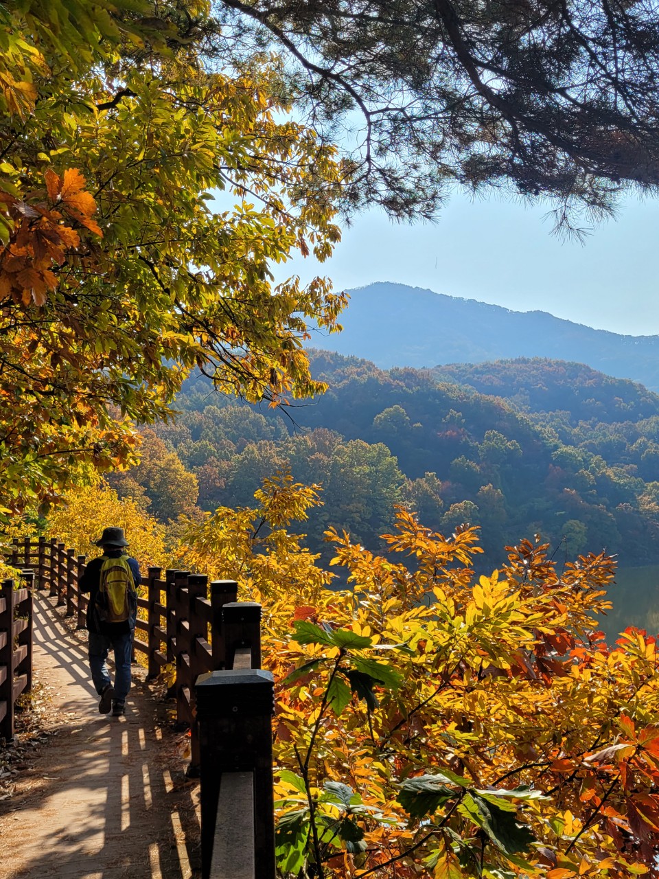10월 말인데도 초여름이 스며있는 날씨 탓에 이마에 송글송글 땀방울이 맺힙니다. 느리게 해찰하며 걷는데도 노동(?)에 비해 과한 땀이 싫지많은 않습니다. 가을 숲의 아름다움에 넋을 잃어도 행복합니다.