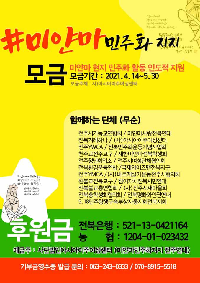 여러분의 사랑과 관심으로 미얀마가 회복되고 결코 빼앗길 수 없는 민주주의와 자유를 지켜낼 것입니다.